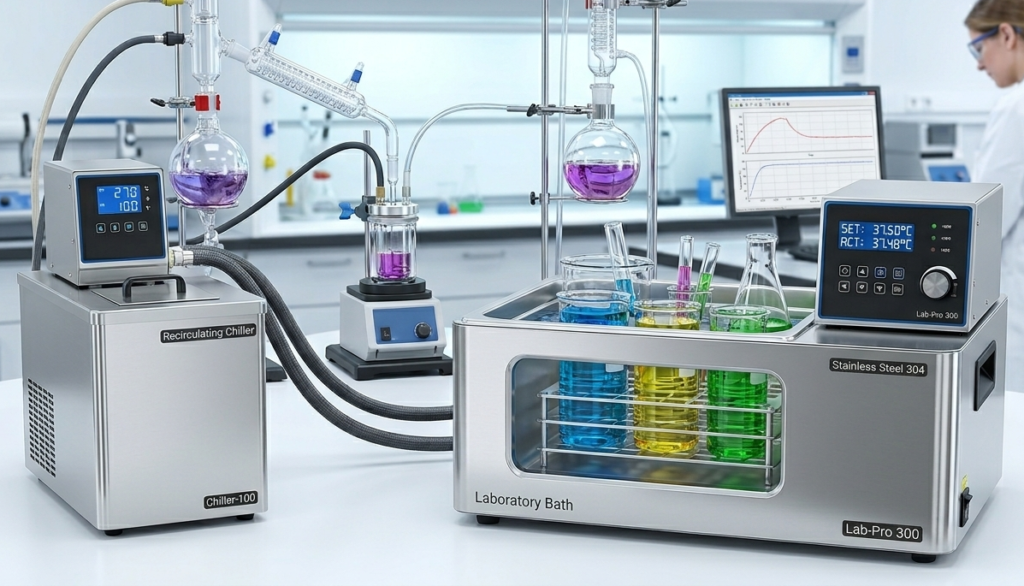 - Low-Temp Circulating Bath: Provides temperature control from -40 0C to 150 0C , ideal for cooling applications.